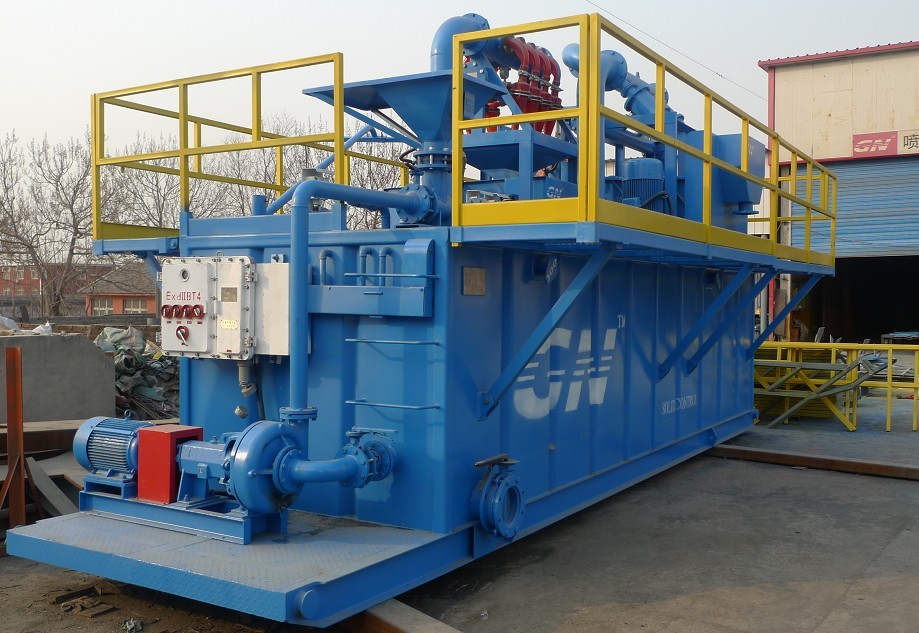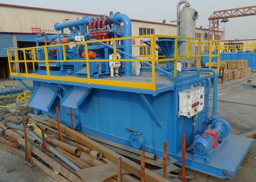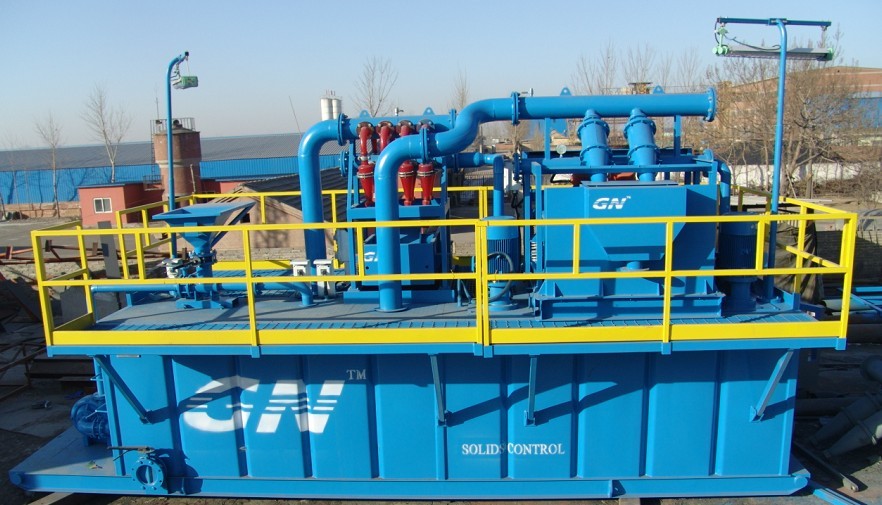 ?印度尼西亞客戶所要處理的流量是60m3/h,定向穿越系統(tǒng)設(shè)備主要包括 1,ZS63×125-3振動(dòng)篩(其中加上了兩個(gè)10〃 除砂旋流器) 2,CNQ60×160/4-8除泥器 3,射流混漿裝置(混漿漏斗和砂泵) 4, 兩個(gè)配套砂泵提供動(dòng)力裝置 5,泥漿罐及其附件